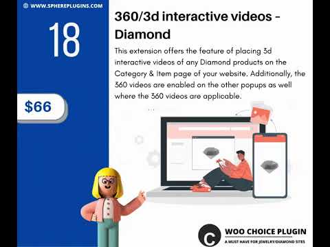 This extension offers the feature of placing 3d interactive videos of any Diamond products on the Category & Item page of your website. Additionally, the 360 videos are enabled on the other popups as well where the 360 videos are applicable.